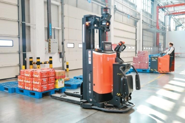 AGV无人叉车试运行。
