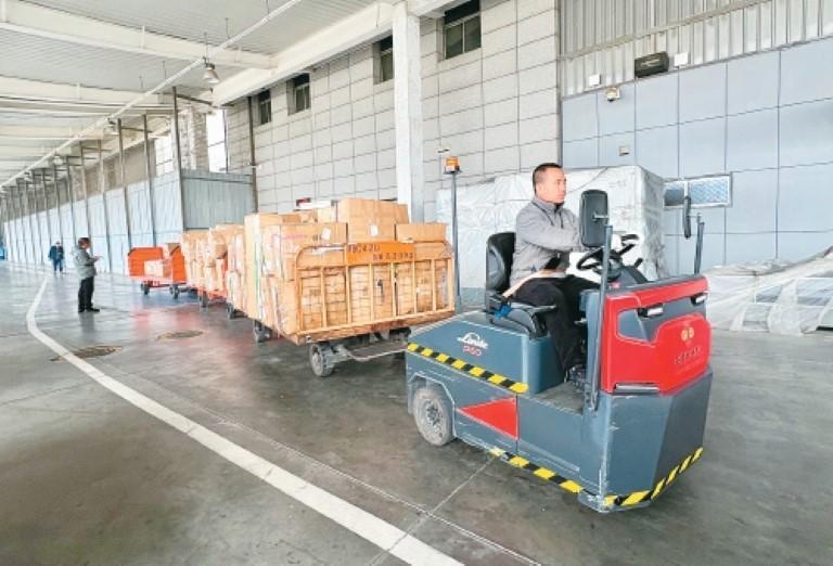 西区国内货站占地11.7万平方米,年保障能力45万吨,24小时运作。货物从到港到装车流程缩至10分钟,AGV无人叉车系统正调试,下一步将覆盖全流程。货站设货机整板货物提取通道,5分钟完成整板装车,小件通过寄货笼分拣,可实现当日送达。未来将持续升级,全面迈向无人化、自动化、智能化,全力打造“服务导向、快进快出、协同共享、数字赋能”的现代化航空货站,为区域经济发展注入强劲动力。