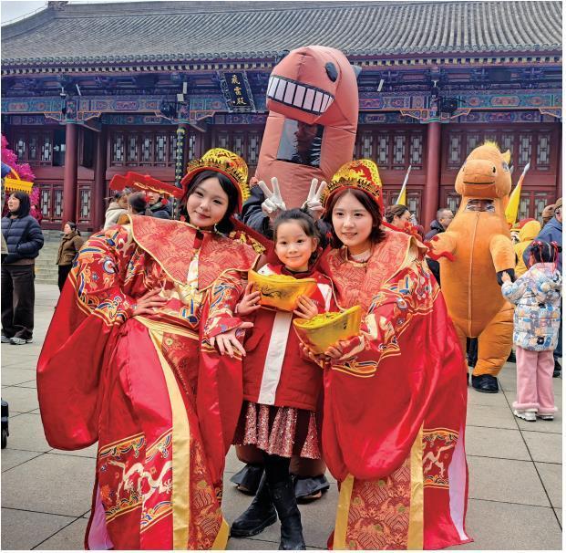 除了百人汉服巡游、“马上有财”主题方阵巡游等亮点节目,景区还精心编排了《那三个兵》《金仙招婿》等趣味互动微演艺,吸引众多市民游客参与。